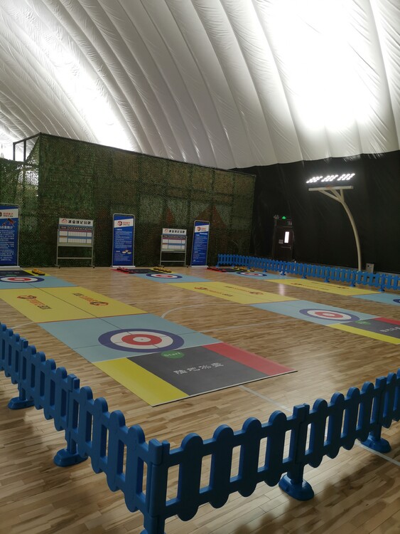 赛道:材料:高新技术研制的合成纳米材料(冰面干燥光洁无味),可根据赛道订制。颜色:白色,可根据要求做成其他颜色。厚度:每片板材的厚度为15-20mm。材质特点:适应温度为-50℃--+60℃,防紫外线、防污、防水、防化学物质以及非磁性化等。维护保养:简单维护,定期保养。护栏:采用高新技术研制的聚乙烯材料制成。可根据场地大小订制。支架:采用高新技术研制的聚乙烯材料制成。可订制。冰壶:特制冰壶,适用于防真冰冰壶赛道