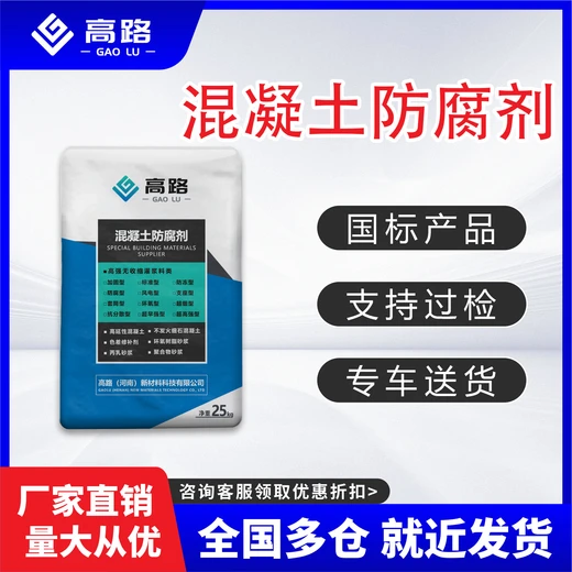 混凝土抗侵蚀防腐剂是我高路(河南)新材料公司经过多年的专项试验和大量的试验数据验证而开发出的混凝土多功能抗侵蚀防腐剂。本产品掺入混凝土中能起到混凝土结构自防腐的作用,使混凝土结构具有特殊的抵御复杂腐蚀介质的能力;提高混凝土的抗裂性、护筋性耐侵蚀性、抗冻性、耐磨性以及抗碱骨料反应性能,从而达到有效提高混凝土结构耐久性的目的,是混凝土结构安全、延长服役寿命的理想外加剂。