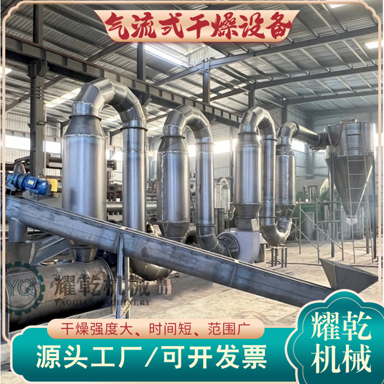 闪蒸烘干设备热效高:气流式烘干机使用物料和气体并流操作,从始至终温度都在一个合理的状态,干燥时间短,因此可以使用一个较高的烘干温度。