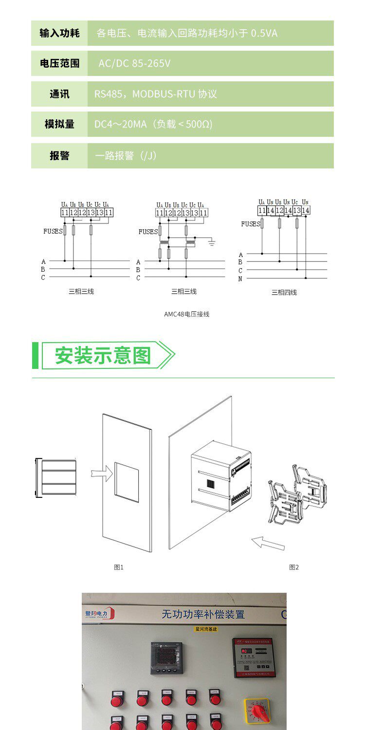 安科瑞电气股份有限公司为你提供的“多功能电表AMC96-E4/KC三相电能表带开关量RS485通讯1路脉冲”详细介绍