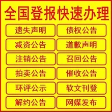 报业集团广告登报中心从事全国各个报纸广告投放、制作、策划,拥有一手的强势媒体资源和的价格优势。与全国多家直营和买断媒体深度合作,实现资源共享,拥有从全国到区域的报纸、电视、电台、户外等媒体优势资源,实现了全国资源一体化共享。 报业集团广告登报中心与全国的31个省市自治区联盟的友好合作关系,拥有一手的强势媒体资源和据对的价格优势。报业集团广告中心从事报纸广告投放、制作、策划,以全国各个报纸广告代理、投放、制作、策划为主营业务。 与此同时,报业集团广告中心和全国多家直营和买断媒体深度合作,实现资源共享,拥有从全国到区域的报纸、电视、电台、户外等媒体优势资源,实现了全国资源一体化共享。【查看详情】