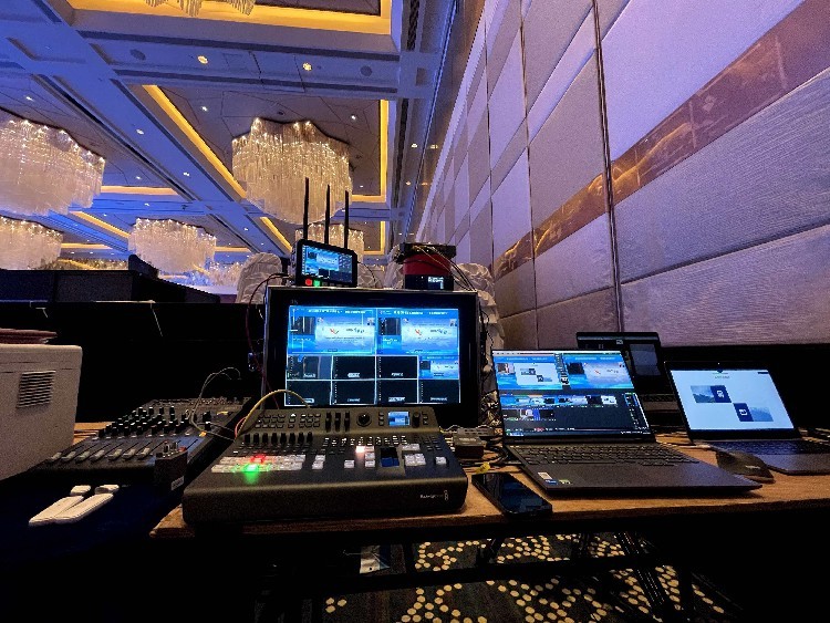 中型会议直播,人多,舞台大,嘉宾多。所需的设备也不一样。单机位已经不适用了。就需要多个机位,包括转臂、移动位置、主全景位置等。需要导播、直播老师、音控、各种视频电缆等。有些地方需要图片传输,并根据现场情况布置位置。音频好使用好的调音台,而不是酒店调音台。