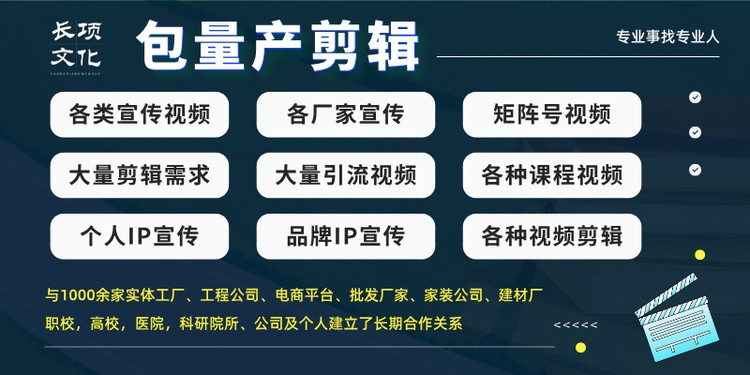 长项文化传媒・制造业批量视频宣传:我们为建材、机械设备、电子芯片等制造企业提供批量剪辑服务,可快速制作产品展示、工厂实力、技术优势等短视频,通过规模化生产与后期包装,提升品牌在 B 端与 C 端的传播效率与度。
